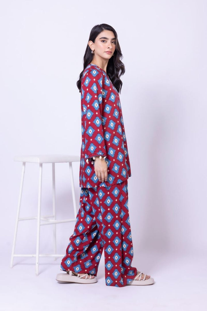 - Description: A printed kurta featuring three-quarter sleeves, a V-cut neckline and tassel detailing on the front.
